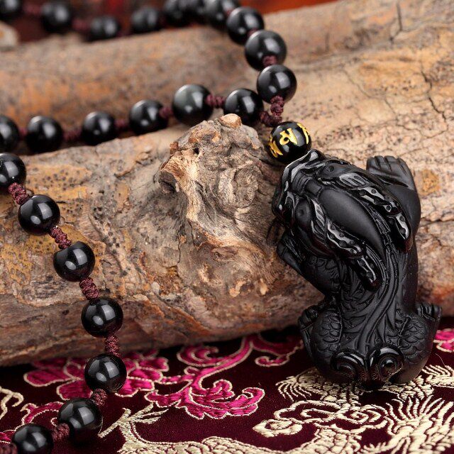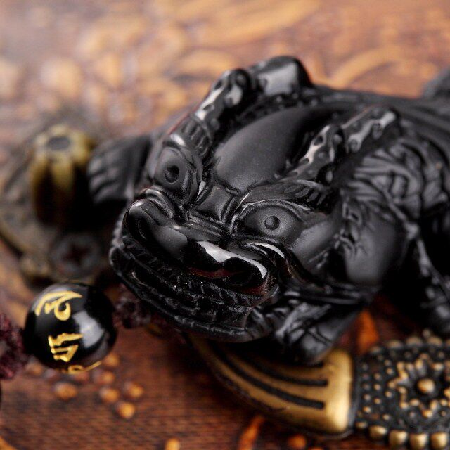 开光黑曜石龙头貔貅吊坠貔貅吊坠 磨砂款飞天兴财貔貅吊坠