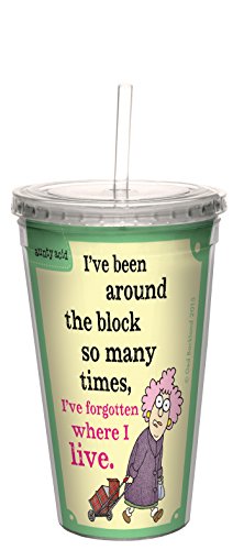Tree-Free Greetings 16-Ounce Double-Walled Cool Cup with Reusable Straw, Aunty Acid Around the Block (CC98645)