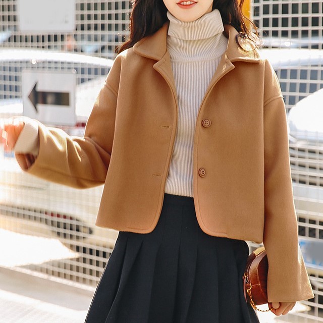 シンプルデザインで通勤にもぴったりなショート丈コート。