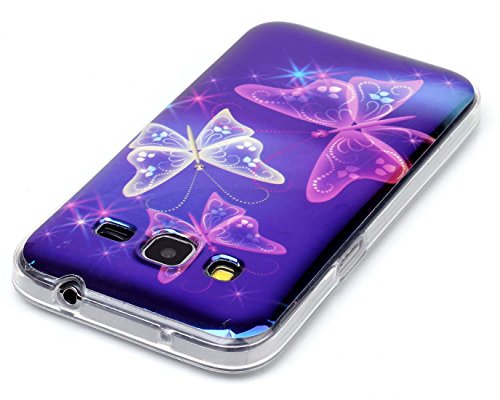 G360 Case AIYZE Blue Light Soft TPU Gel Slim Protective Back Case with Silicone Mobile Phone Stand for Samsung Galaxy Core Prime G360 G3606 G3608 G3609 Prevail LTE(Dream Three Butterflies)