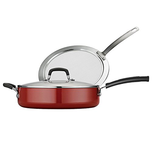 -. Feature : Whether you're preparing fried chicken, fish fillets or spaghetti sauce, this nonstick heavy-gauge sauté pan set provides superior cooking performance. Sauté pan is made of heavy-gauge aluminum for superior performance Ideal for prepared hearty family-sized meals and one-pot recipes Nonstick interior provides a quick-release cooking surface Set includes sauté pan, glass lid and splatter screen