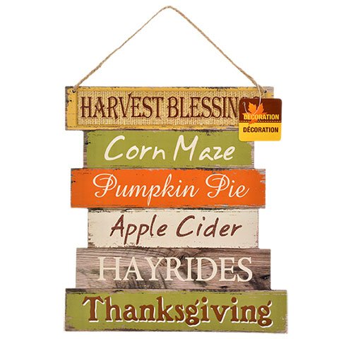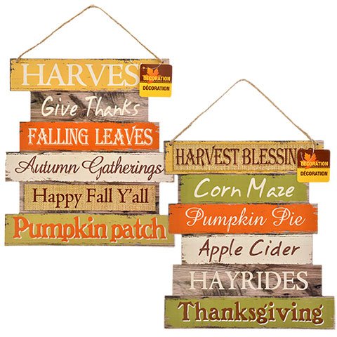 A lovely addition to your autumn decorating! Lightweight MDF sign features colorful slats printed with short phrases that reference the season. Each also has an attached piece of nylon twine to hang the signs.