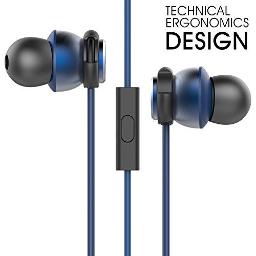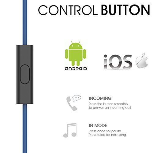 Earphone Wired Sport Running Earphones Stereo Bass Headphone by SUNGRAY Noise Cancelling 3.5mm HiFi Ear Hook with Microphone for iPhone iPad Android Phones Windows Phones MP3 MP4 and Tablets (Blue)
