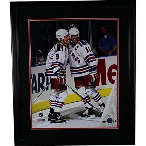 Adam Graves/ Mark Messier Dual Signed and framed Celebration Behind The Goal 16x20 Photo (Round black frame w/ black over red matte)
