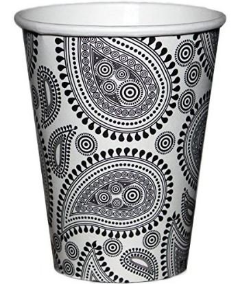 Product DescriptionStunning and original Paisley in classic black and white. Fun, Fresh, and Stylish! 12 oz cups hold both hot and cold beverages.0