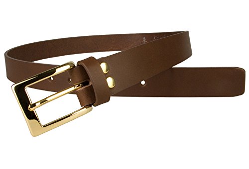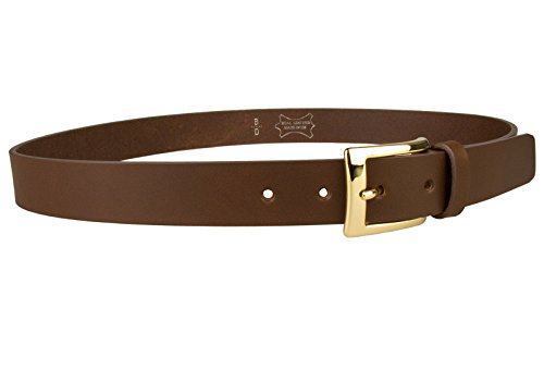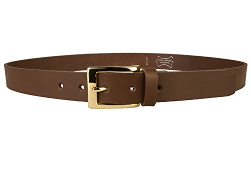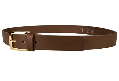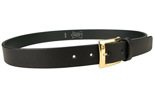 This is a men's quality 30mm (1 3/16") wide belt made in the UK by Belt Designs with full grain Italian vegetable tanned leather. It is not made with inferior bonded or split leather. It has a rectangular shiny gold plated buckle, a riveted Return which is strong and durable and five adjustment holes from the first to the last hole. Full-grain vegetable tanned leather is desirable because of its minimal treatments, natural appearance, durability and breathability. Full-grain vegetable tanned leather is tanned with natural plant extracts and is considered among the best quality leather you can buy. It is long lasting and will develop a patina with age. Size Guidance Our belt measurements are taken from the 'Return' and then up to the first and last hole.The 'Return' is where the belt meets with the buckle (see diagram). 1.Measure one of your own belts from the 'Return' to the hole you fasten your belt with. Use this measurement to select one of our belts that has this measurement within its size range. Make sure that your own belt has no stretch though as this could result in an inaccurate measurement. 2.Or measure your waist whilst wearing your pants as this usually gives you the correct belt size. 3.Or if you dont have a tape measure you can approximate your belt size but this will not be so accurate. Your belt size will usually need to be about one inch bigger than your actual waist size depending on the thickness of your clothing material and how tight you like to wear your belt/ clothing. N.B. CLOTHING SIZE LABELS VARY FROM ONE MANUFACTURER TO ANOTHER THEREFORE WE WOULD NOT RECOMMEND USING THE SIZE LABEL AS AN ACCURATE WAY OF DECIDING WHICH BELT SIZE TO BUY. N.B. SOME PANTS LABELS DISPLAY THE WAIST SIZE BUT ACTUALLY SIT A LITTLE LOWER THAN THE WAIST LINE SO YOU MAY NEED A BELT SIZE THAT IS NEARER YOUR HIP SIZE.