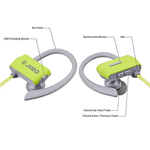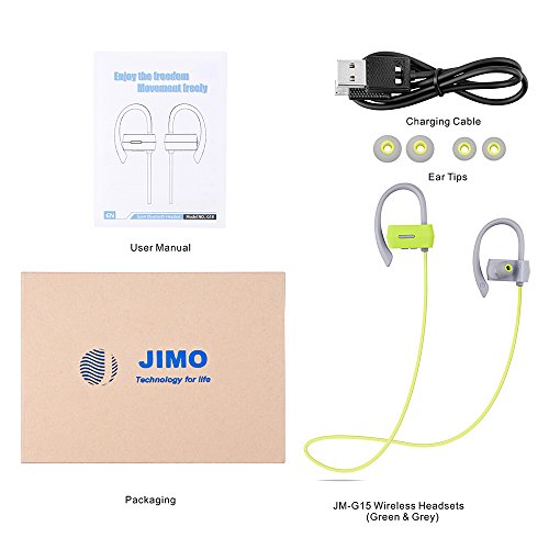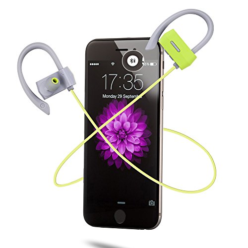 Bluetooth Headphones Ergonomic Hooks Wireless Earbuds w/ Mic, Sweatproof, Bluetooth 4.1 8 Hours, Noise Cancelling Earphones, for Sports, Running Yoga Gym Workout, Travel (Gary & Green)