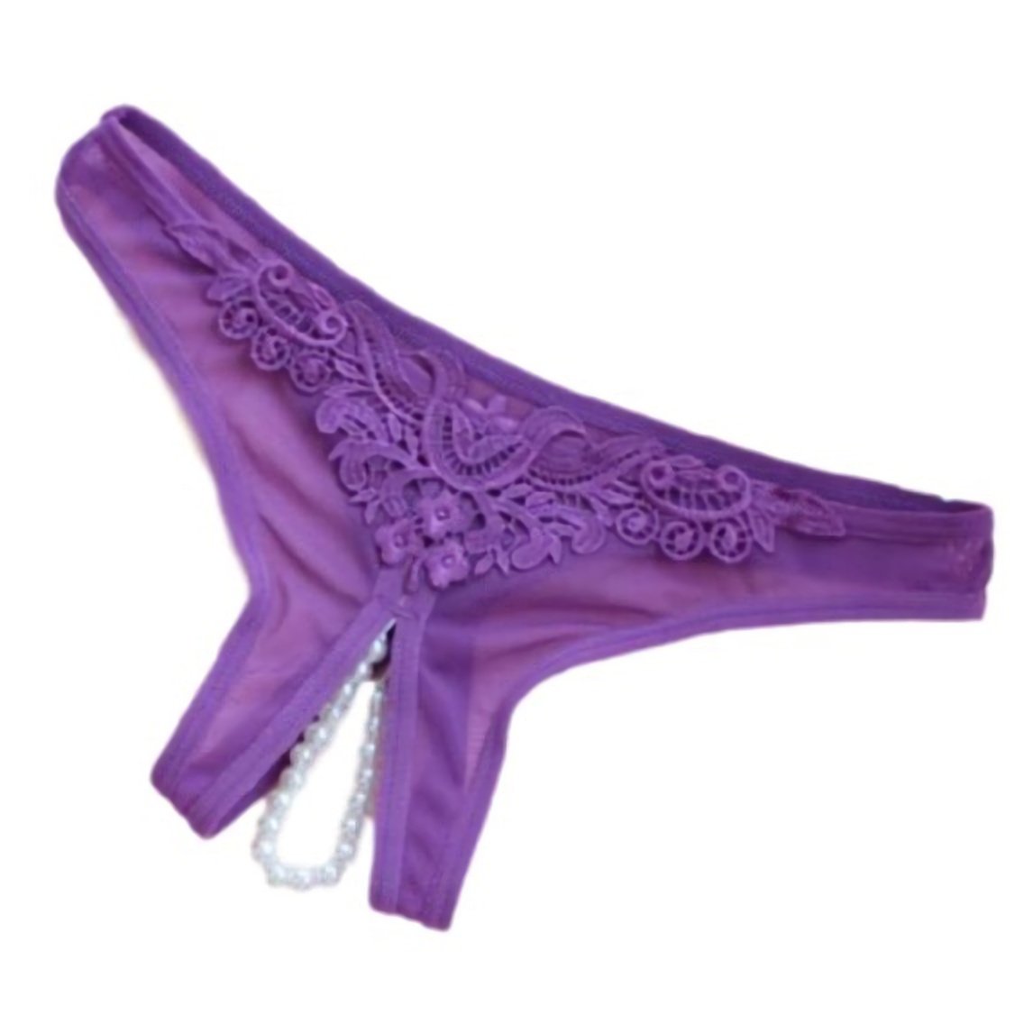 Gorgeous pearl ornament is attached to the crotch part.