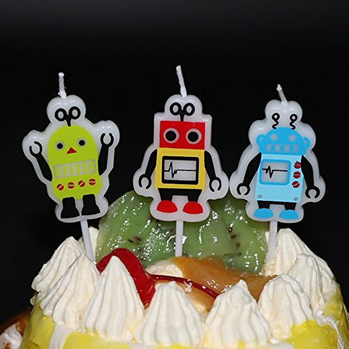 Cartoon Birthday Candles Creative Candle Three Robot Boy Prince Candles Smokeless Candles Cartoon Party Cake Decorated With Baked Creative Candles 3.5 * 1.8 * 1.8 Cm 2Boxes