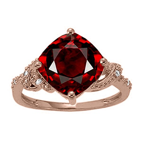 -. Title : 3.25 Ct. Ttw Diamond And Cushion Shaped Garnet Ring In 10K Rose Gold