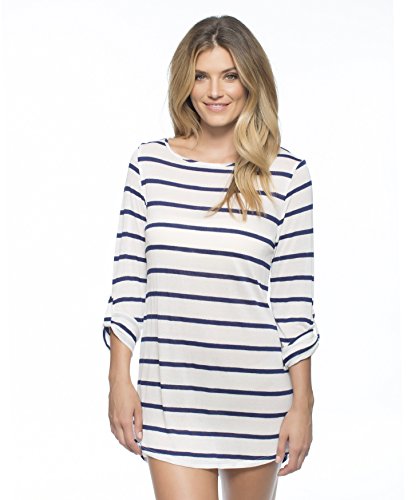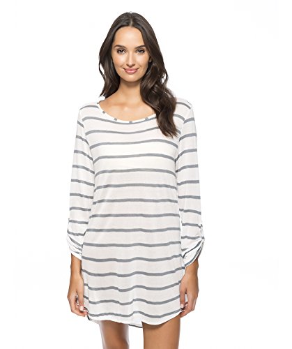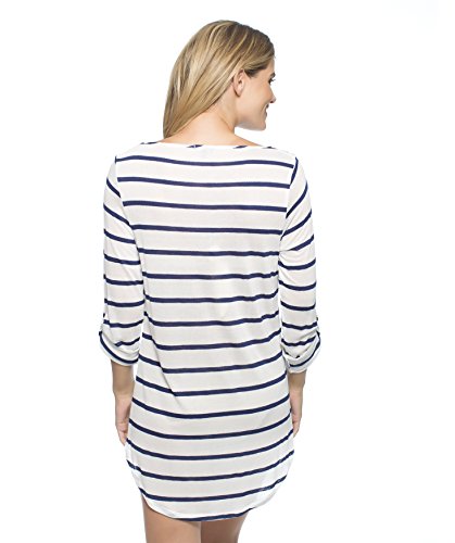 This lightweight cover up has a classic stripe with sleeve button details for a great look