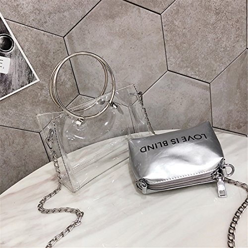 Women's 2PCS Tote Bag PVC Wrist Bag Top Handle Handbags Shoulder Bag Set