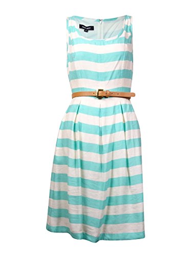Nine West Women's Sleeveless Striped Topstitch Dress with Pleats