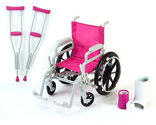 Pink Wheelchair, Crutches, Bandage Made by Sophia's. Designer Doll Clothes Affordably Priced!