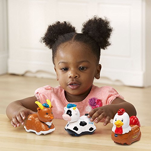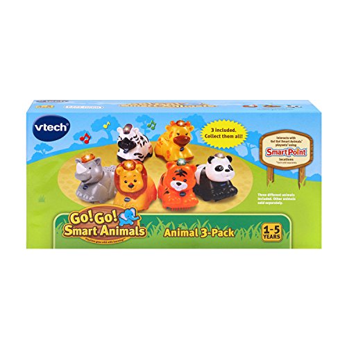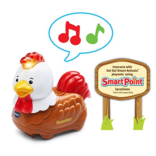 Explore the playsets with Go! Go! Smart Animals characters! Each is a friendly animal who says fun phrases and plays music and sounds when the light-up button is pressed. Roll over SmartPoint locations on playsets and the SmartPoint animals respond with different phrases, cheerful melodies and sing-along songs! This Petting Zoo Animals set comes in a pack of 3: Go! Go! Smart Animals Rooster. Go! Go! Smart Animals Goat, and Go! Go! Smart Animals Cow. Through pretend play with each animal, your little one will learn about the letter of the animal's name. Hear melodies, songs, different phrases and sound effects when this toy responds to SmartPoint locations on the many Go! Go! Smart Animals playsets (each sold separately). It's playtime with miles of learning!Feature