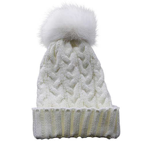 -. Title : DDLBiz Womens Knitted Fur Hat Soft Real Large Raccoon Fur Pom Pom Beanie Hats