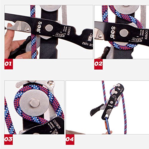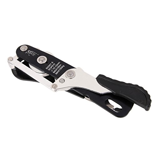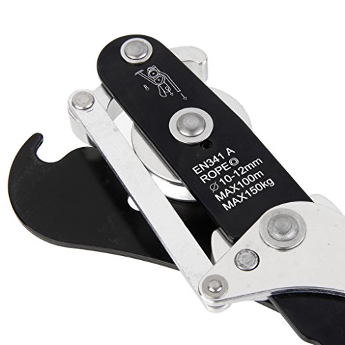 Description: Self-breaking function allows you to easily stop and hold your position on rope Can be rapidly installed or removed from the rope without disconnecting it from the harness Can be used to ascend short distances with the addition of an ascender and foot loop Suitable for rope between 8 and 12 mm in diameter Size: approx. 24.5 x 5.5 cm / 9.65 x 2.17 inch Material: Aluminum Color: black