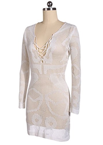 -. Feature : Stylish swimwear cover-up with an openwork crocheted / Deep v neck string design,make you more charming. / Easy to put on or take off, slightly and comfortable . / Sexy and Elegant best match for bikini or any summer dress and shorts. / Size: Free Size (Fit US XS,S,M),cover up length: 27.9" , Bust: 33" -51".