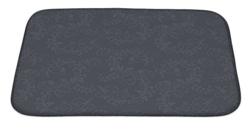 Gear New Dark Grey Floral Pattern Bath Rug Mat No Slip Microfiber Memory Foam
