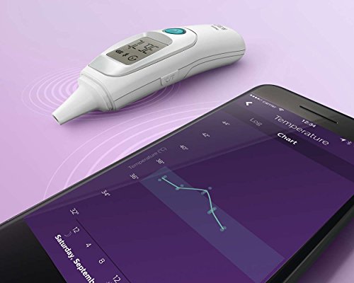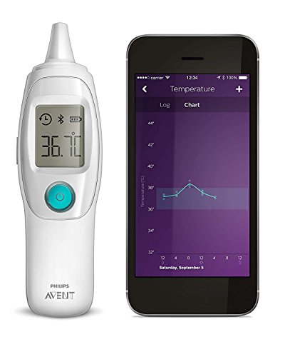 Studio : Philipss Publisher : Philipss Binding : Health and Beauty Product Description The Philips Avent smart ear thermometer connects with our uGrow app. uGrow App and smart products work together to collect data and provide personalized information to support the healthy development of your child. The Philips Avent smart ear thermometer quickly and accurately takes temperature readings and establishes a body temperature history in the uGrow app to easily share with your doctor. Keeping your child still long enough to take an accurate reading can be difficult. The Philips Avent smart ear thermometer addresses this problem by being specially designed for speed and ease. Just one press of the button and you will have a reading in 2 seconds. Compact and streamlined, the thermometer has a simple one touch button and a probe tip that is suitable for all ages. No matter whether you work in Celsius or Fahrenheit, the Philips Avent smart ear thermometer will give you the results you need in the scale you understand. The Philips Avent smart ear thermometer uses in-ear measurement to offer precise readings you can be confident with. The Philips Avent smart ear thermometer has a clear LCD display so you can instantly see if the temperature reading is at normal* or raised levels. The light ring turns red for a temperature of 38.0°C (100.4°F) and higher. Box Contains x 1 Smart Ear Thermometer, 2 x AAA non-rechargeable batteries 0