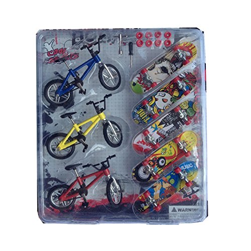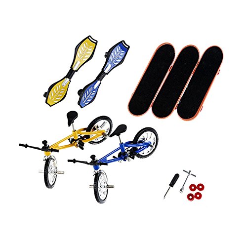 Description: 100% brand new and high quality Mini cool and exquisite workmanship. Excellent collection and great gift Cool finger bicycle, finger Swing Board and finger Skateboards set toy. Quite popular in bicycle fans Excellent collection and great gift. Let our psychological pressure release, and these toys can treat children's hyperactivity disorder, help adults to quit smoking. Specification: Material: Alloy Plastic Finger Skateboard Size: 9.5cm x 2.5cm x 2cm / 3.74 x 0.98 x 0.79-Inches; Bike Size: 10cm x 4.5cm x 7cm / 3.94 x 1.77 x 2.76-Inches WARNING: Contains small parts, please prevent kids swallowing the small parts by mistake. Package Includes: Quantity: 1set includes - 2Pcs finger bicycle 2Pcs finger Swing Board 3Pcs finger Skateboards Note: 1.Transition: 1cm=10mm=0.39inch 2.Please allow 1-3cm error due to manual measurement. pls make sure you do not mind before you buy. 3.Due to the difference between different monitors, the picture may not reflect the actual color of the item. 0
