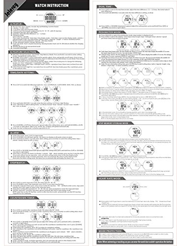 -. Feature : Wrist Size:16cm/6.29inch-23cm/9.0inch / Multi Function:LED display,Step account,Timing,Alarm,164FT waterproof / Soft silicone strap and very comfortable to wear,come with free and nice gift case. / Available for hiking,climbing,swiming / please don't press any keys when underwater
