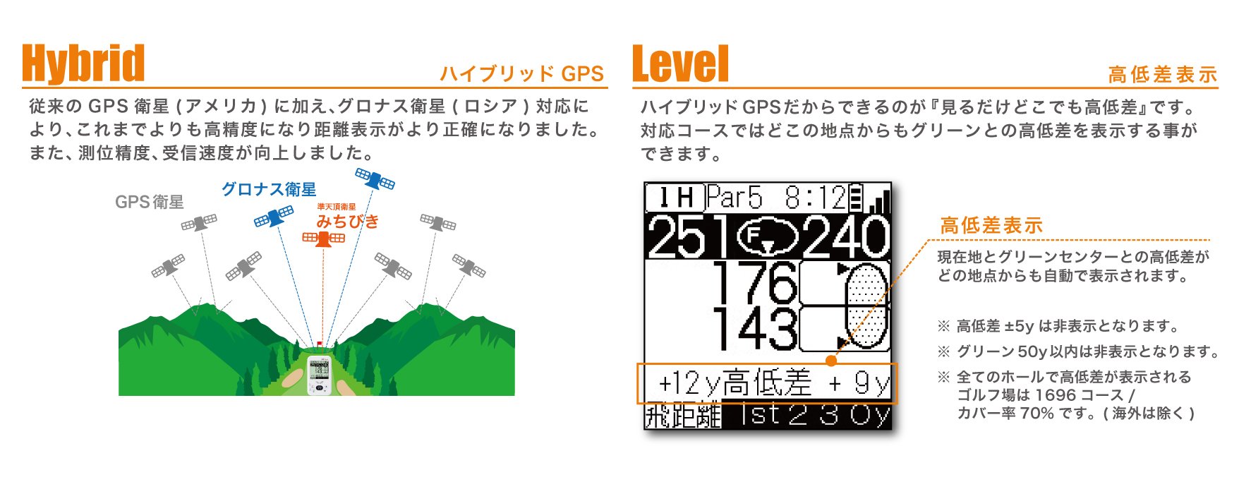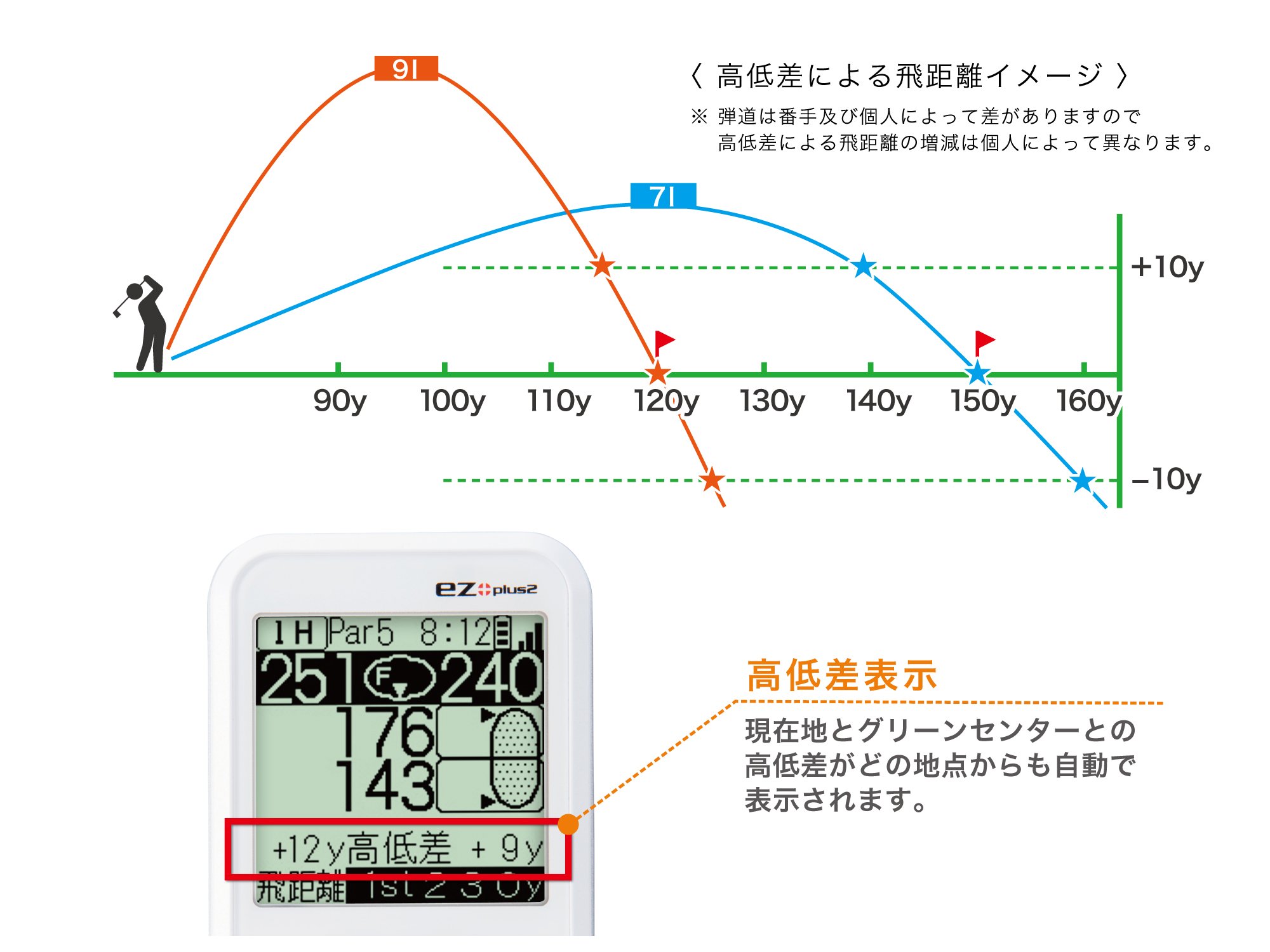 · Elevation difference display (Golf course coverage rate corresponding to height difference display 70%)