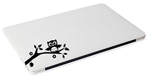 -. Title : Laptop - Owl on branch with leaves, flower, and nut cute apple decal - matte black skins stickers