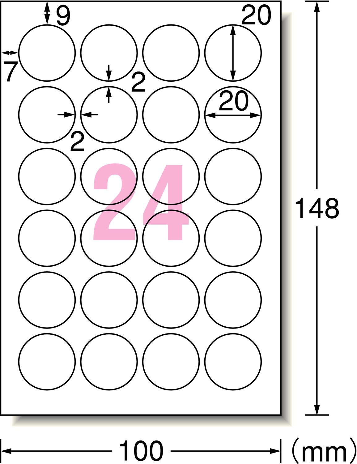 A-One (A-one) handwriting label postcard size round 24 side can also print also 20mm?O 12 sheets (288 pieces) 26105