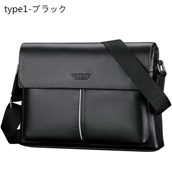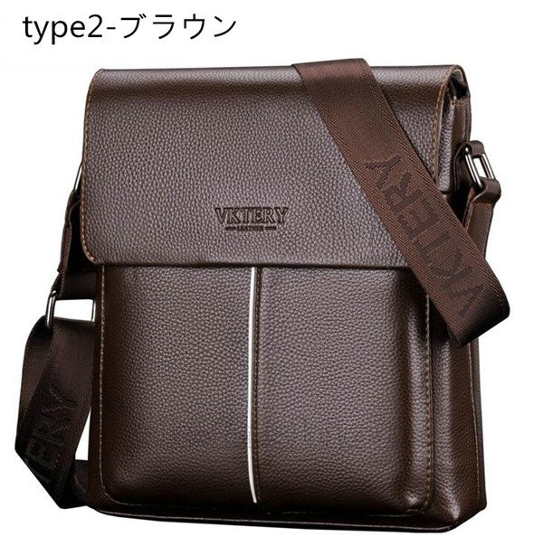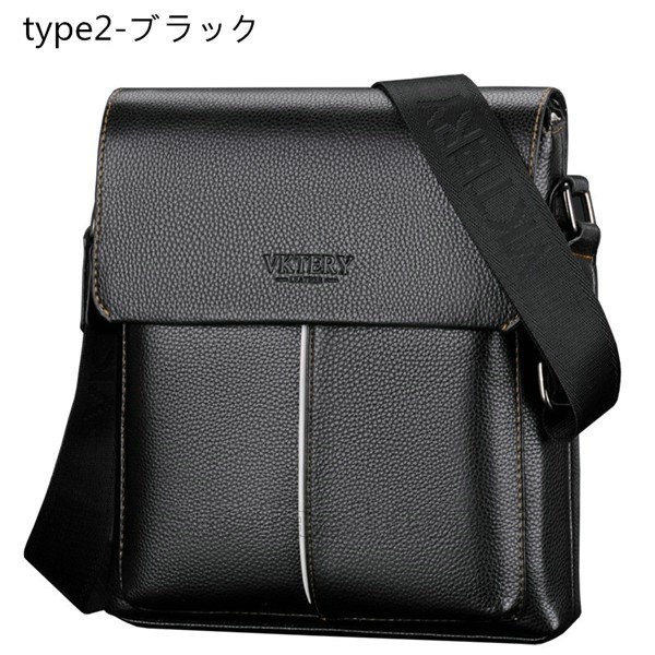 【サイズ】type1:横約34cm/縦約24cm/マチ約5cmtype2:横約24cm/縦約27cm/マチ約5cm【カラー】type1-ブラック、type1-ブラウン、type2-ブラック、type2-ブラウン【素 材】PUレザー【コメント】高級感漂う質感はとてもPUレザーとは思えない仕上がりです。レザーの自然な生地感が再現されています。カジュアルバッグにもビジネスバッグにもシーンに合わせて使えるので通勤、通学、プレゼントにもおすすめのショルダーバッグです!【注意点】※生産時期により、色・サイズ・デザインが多少が異なる場合がございます。あらかじめ御了承下さい。※商品写真はできる限り実物の色に近づけるよう徹底しておりますが、 お使いのモニター設定、お部屋の照明等により実際の商品と色味が異なる場合がございます。※サイズの測り方はスタッフ間で統一しておりますが、若干の誤差(約2~3cm前後)が生じる場合がございます。※生地の特性上、匂いが強く感じられるものもございます。数日のご使用や陰干しなどでほとんど感じられなくなります。