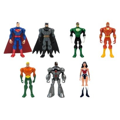 -. Binding : Toy -. Brand : Mattel -. EAN : 0746775256623 -. Feature : Your little Justice League fan will love this set of 7 Batman Legacy Figures. With these heroes from the DC Universe together in one pack, no challenge is too great. / Each figure is highly detailed with iconic uniforms and emblems and features superior articulation for maximum battling capability. / Their sculpted hands can grasp and hold weapons and other accessories, sold separately. This set includes Batman, Superman, Green Lantern, The Flash, Aquaman, Cyborg and Wonder Woman. / Measures: 4" to 4.75". -. IsAdultProduct : 0 -. Label : Mattel -. LegalDisclaimer : ages four and up small parts. choking hazard -. Manufacturer : Mattel -. MPN : 087-06-1641 -. PackageQuantity : 1 -. PartNumber : 087-06-1641 -. ProductGroup : Toy -. ProductTypeName : TOYS_AND_GAMES -. Publisher : Mattel -. Size : 9.0 " H x 1.0 " W x 18.0 " L -. Studio : Mattel -. Title : DC Universe Justice League All Stars 7 Figure Exclusive -. UPC : 746775256623