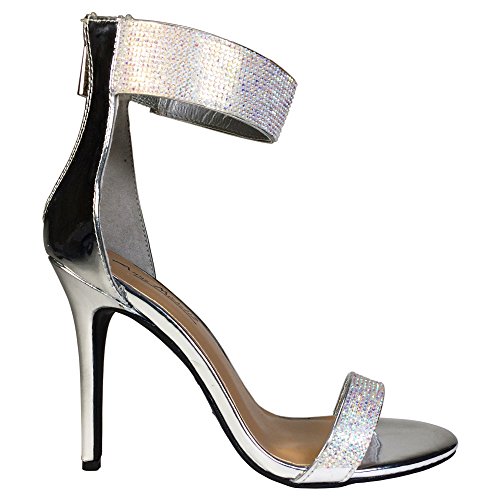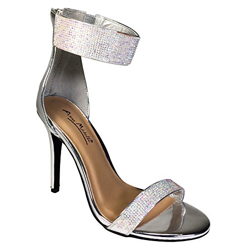Anne Michelle Women's One Band Embellished Dress Heel Sandal with Ankle Strap