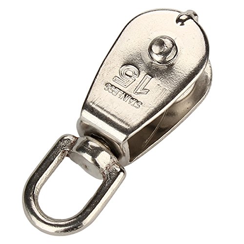 BQLZR Silver M15 Stainless steel 304 Single Wheel Swivel Pulley Block 15mm Dia