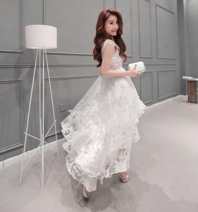 まるでウエディングドレスのような綺麗なワンピースドレスです。