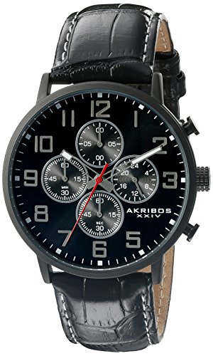 -. Title : Akribos XXIV Men's AK854BK Round Black Dial Chronograph Quartz Black Strap Watch