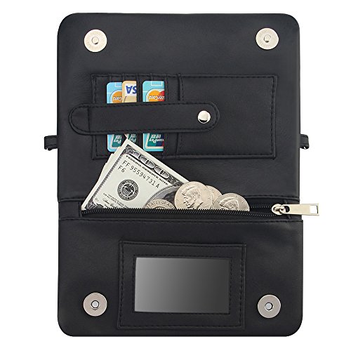 -. Feature : Dimensions: 7.8" x 4.7" x 0.8" / Double magnetic closure, more secure and firm for your belongings. / Spacious Interior: 6 credit card slots, 1 clear license/ID window, 3 zipper compartment, comes with detachable wristlets and adjustable shoulder strap. / Versatile Clutch Wallet / Shoulder Crossbody Bag / Wristlet Purse Design for different occasions, both the strap are removable. / Special 3-Way Wallet with Shoulder Strap for multi-purpose carrying, super functional for everyday use.