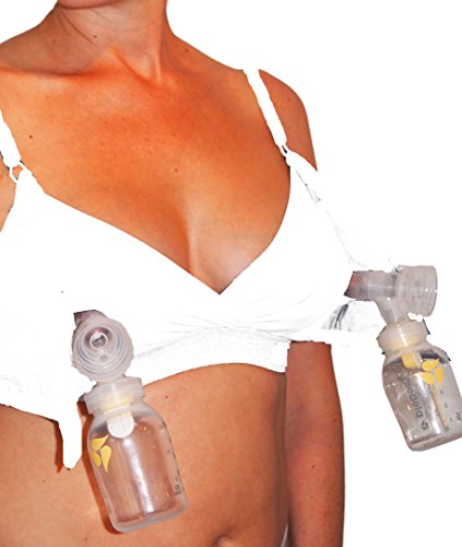 All in One nursing and hands-free pumping bra that can be worn comfortably all day long - no more changing clothes and bras, for beautiful and efficient multitasking 2 panels for support of your breasts and the pump flanges. Top cotton layer connects to 1 of 5 settings to tighten when drained or loosen when engorged. Lower nylon lycra panel has tight opening for the flanges and is quick drying. Pull aside for nursing, exposing more of the breast Both sides are independent to allow for simultaneous nursing on one side and hands-free pumping on the other. Adjustable back straps can be crossed for racer back option. Back closure has 4" of hook and eye closure to expand and shrink with mom pre and post partum Figure flattering and sexy - no more uni-boob Sized S-2XL, fits from 32A-44H. BRA SIZING IS NOT STANDARD, so to ensure you order the right size, please use our sizing chart and measuring guidelines. To get the accurate size, use a tape measure and convert your size in inches. TAGS MUST REMAIN ATTACHED to qualify for return.