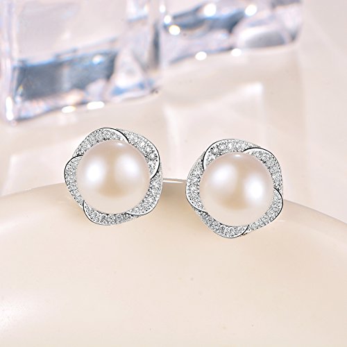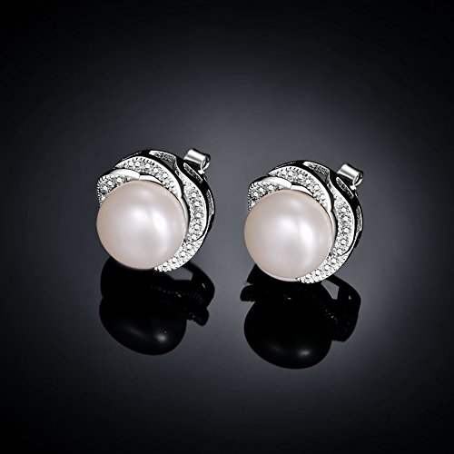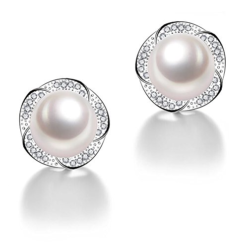 -. Feature : All of our Freshwater Pearls are from China,all are of freshwater Cultured Pearl / These earrings are mounted on the highest quality .925 sterling silver backings. Additionally, this piece is adorned with the stunning Cubic Zirconia Crystals. / To guarantee your complete and total satisfaction, we offer our customers a 60-Day return policy.