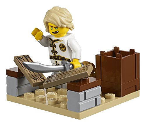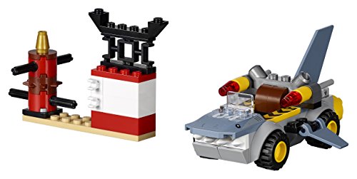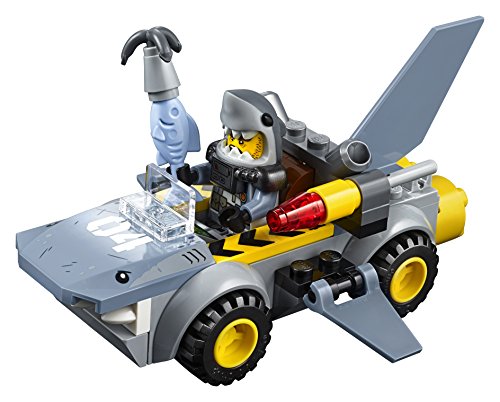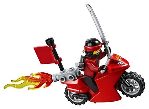Team up with Kai and Lloyd for some Ninja fun as they battle great white, featuring a training area with weapon stand, breakable blocks, spinning training dummy, flaming motorcycle and a shark car with flick missiles. This fun the LEGO NINJAGO movie set features a simple guide to build and play, and some bigger pieces to help build confidence in younger children. LEGO Juniors is an age-appropriate build and play experience for ages 4-7. Includes 3 minifigures.Feature