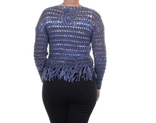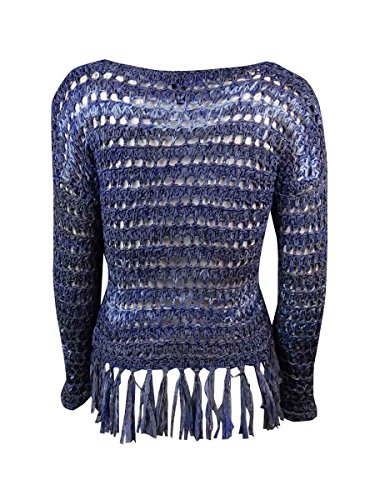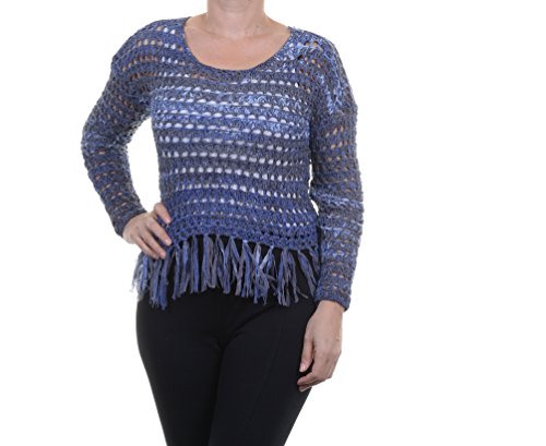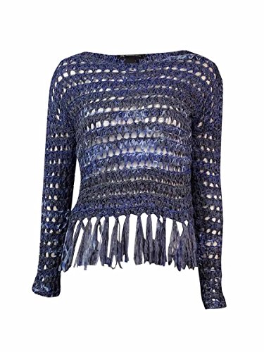 Product DescriptionSweater features no lining, round neck, long sleeves, fringe hem, tape yarn knit fabric, see-through, and pullover style.0