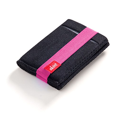 -. Feature : The Skint Wallet was invented in the U.K. to carry cash and cards in comfort without the bulk of a traditional wallet. / Wallets are crafted from high quality stretch fabric; whether at work or play, Skint Wallet is all you need to secure your money, whether on a travel trip or around town. / Lightweight, compact design accommodates up to 15 credit cards in 5 pockets plus cash, yet fits in a front pocket or anywhere you'd like. / A brightly colored security band keeps your contents safe yet easily accessible when you need them. / Measures a truly slim 2.3" x 3.5" and weighs just a fraction of an ounce (.75 oz, to be precise)