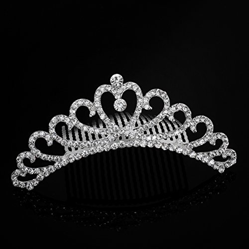 LY8 Wedding Tiara Heart Crystal Rhinestone Bridal Crown Bridesmaid Hair Comb for Prom Engagement Party