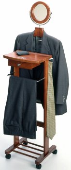 Studio : Netixchange Publisher : Netixchange Binding : Kitchen Product Description VALET STAND - 140-500-02 This beautiful Valet Stand has a place for everything and is perfect for the business professional. It features a bar to hang your pants to keep them wrinkle free, a handy shelf for your keys and wallet. A shelf for your shoes, and a built-in hanger for your suit coat. It even has a swiveling mirror so you can make sure your tie is straight before you head out for the day! This would look great in your place.. Don't you think? 0