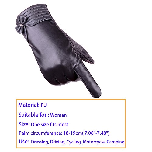 Binding : Apparel Product Description Zerlar Windproof Touchscreen Leather Gloves Christmas Warm Gloves to Ladies for Texting Driving Cycling Camping! Great gift!!! Warm luxury comfortable! Perfect for numerous occasions and outfits! Questions Answers: Q: What size are gloves? A: I would say it is only one standard size, But it fits most of woman hand. Just check your hand size before purchasing that will be much better. Q: Is this waterproof? A: The back of the gloves is PU waterproof material, But I do not think the whole glove is waterproof, so please do not use it in water. Zerlar Touchscreen Leather Gloves Specifications: Material: Durable PU Leather Color: Black, Grey, Red, Blue, Dark Red Size: One size fits most.Palm circumference around 18-19cm( 7.08"- 7.48") Use: Dressing, Driving, Cycling, Motorcycle, Camping. Also they is great gift for family or friends. Package Include: 1 Pair x Zerlar Touchscreen Leather Gloves Note: 1. Please check you hand size before purchasing. 2.Please allow slight deviation for the measurement data. 3.All products from Ueasy store can accept 100% refund if there have any quality issue. Zerlar: Women, Fashion and Beauty. "ZERLAR" Trademark No.: 86314155 . 100% Brand New item from Zerlar, Free Shipping; Hope you can get the best service from Zerlar Store.