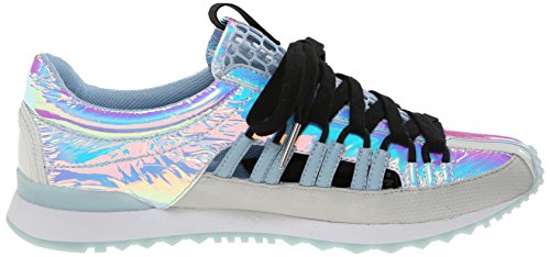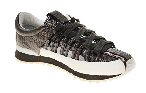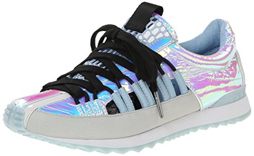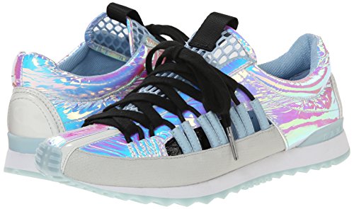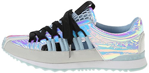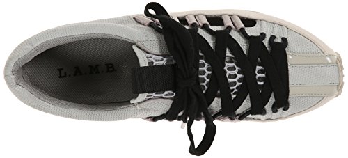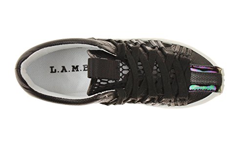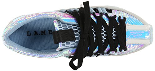 Studio : L.A.M.B. Publisher : L.A.M.B. Binding : Shoes Product Description Sporty style meets futuristic flair on these L.A.M.B. sneakers, cut to a low-top profile and shimmering in iridescent, crinkled leather. Tiny cutouts and sheer mesh tongue. Lace-up closure. Foam sidewall and rubber sole. 0