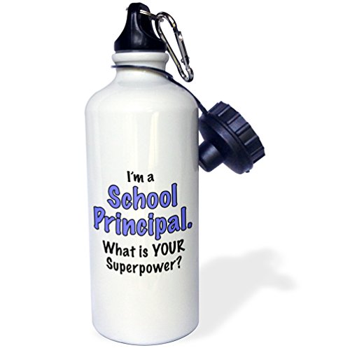 3dRose wb_193263_1 Im a School Principal What is Your Superpower Blue Sports Water Bottle, 21 oz, White