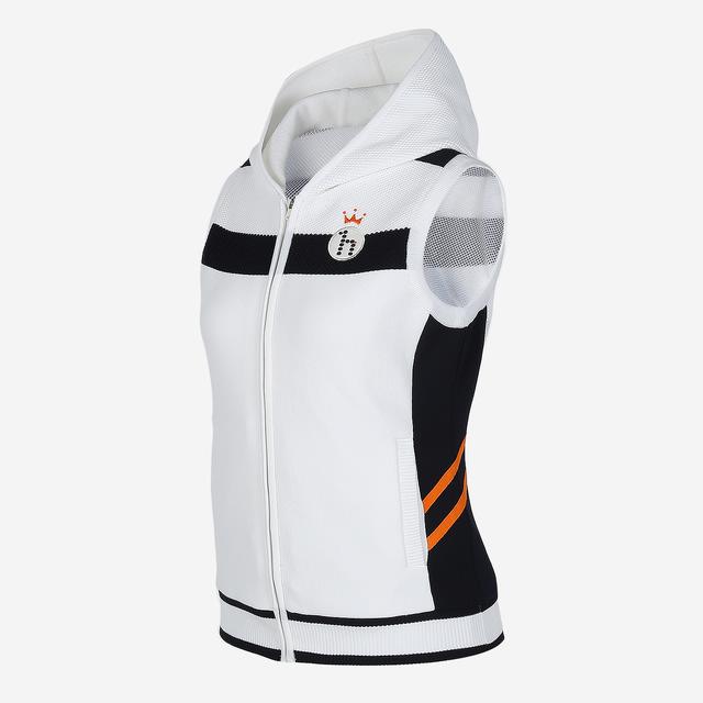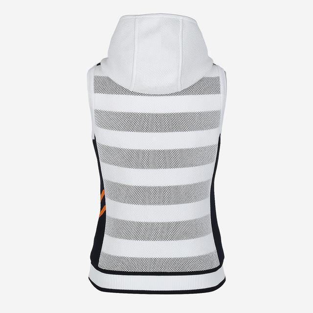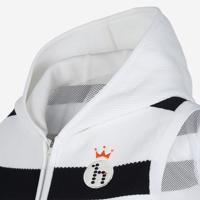 스트라이프 패턴위에 메쉬를 배색하여 독특하며 캐주얼한 외관을 보여주는 후드형 집업 베스트입니다.