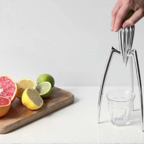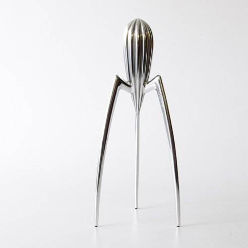 Studio : Alessi Publisher : Alessi Binding : Kitchen Product Description One of the first projects by French designer, Philippe Starck for Alessi. The Juicy Salif was devised in the second half of the 1980s (along with the Walter Wayle II wall clock, the Hot Bertaa kettle and the large Max le Chinois colander). An excellent example of Alessis role as artistic mediator in the most turbulent areas of creative potential (the piece was his response to our precise briefing for a stainless steel tray), it remains unparalleled in its ability to generate discussions about its meaning and design, partly because of its unconventional use of what semiologists refer to as the decorative veil which, even though generally in a less overt manner, is inexorably destined to cover all objects created by man. To fully understand the true meaning of its existence, it is possibly necessary to refer to the theories of Leroy-Gourham, who considers the notion of functional approximation to be fundamental. This notion suggests that there is always a certain degree of freedom in interpreting relationships between Form and Function: it is precisely this continual play between Form and Function that leads to the decorative veil mentioned above, that Floch considers to be the manifestation of the legendary and aesthetic dimension of the object, as originally defined by Greimas. As well as being the most controversial citrus fruit squeezer of the 20th century, it has also become one of the icons of design of the 1990s, and it continues to be one of the most provocatively intelligent articles in the Alessi catalog. 0