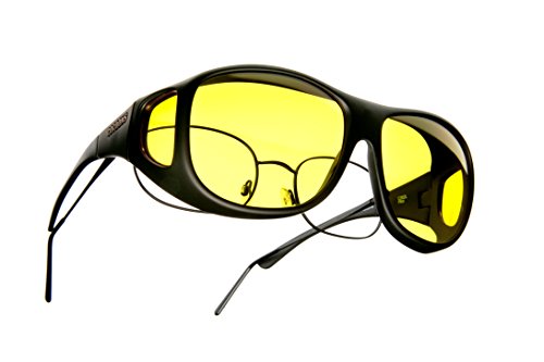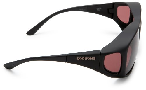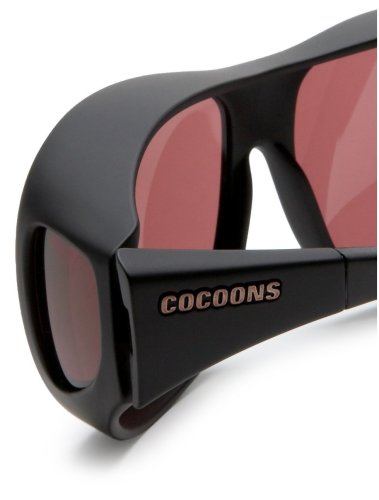 Designed to fit comfortably and securely over 99.5% of all prescription eyewear frames. Extra Large Fits over prescription frames measuring less than 5 1/2"w 2"h. Six sizes to choose from. 360° of Protection: It is important that a sunglass provides protection from all angles. Cocoons patented frame designs block damaging UV light and glare from all angles, completely isolating the eyes in a cocoon of filtered light. Each pair includes a custom designed protective neoprene case, large lens cloth and a limited lifetime frame warranty.Feature