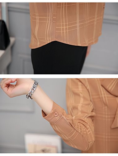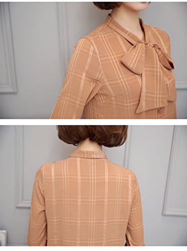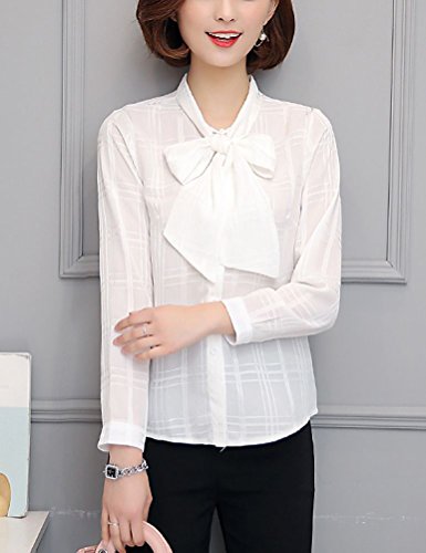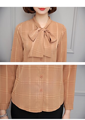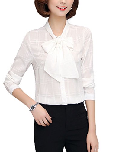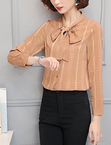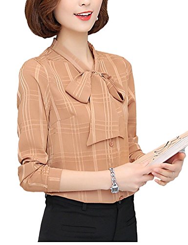 -. Title : BolanVerl レディースファッション シフォン ブラウス シャツ ボウタイ ネック リボン 前開き シワ 加工 チェック 柄 長袖 カットソー きれいめ カジュアル 通勤 通学 オフィス お出かけ ラベンダー 黒 白 ベージュ